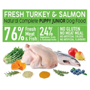 Полувлажна храна със 76% прясно пуешко и сьомга за подрастващи кучета от всички породи – Arquivet Fresh Puppy Junior Turkey & Salmon