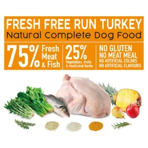 Original price was: 7,99 € (15.63 лв.).6,87 € (13.44 лв.)Текущата цена е: 6,87 € (13.44 лв.).Полувлажна храна със 75% свежо пуешко и риба за всички породи кучета – Arquivet Fresh free-range turkey