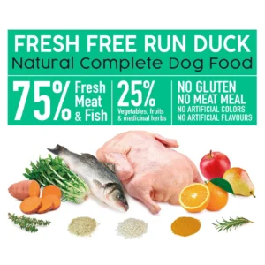 Полувлажна храна със 75% свежо патешко и риба за всички породи кучета – Arquivet Fresh Free Run Duck