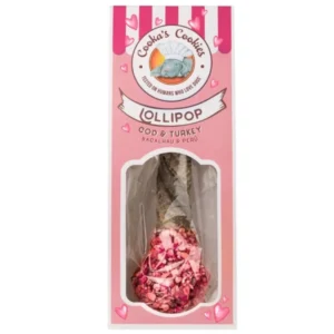 Original price was: 8,90 € (17.41 лв.).7,65 € (14.96 лв.)Текущата цена е: 7,65 € (14.96 лв.).Розова близалка за кучета с пуйка и кожа от треска – Lollipop Valentine’s Day Edition