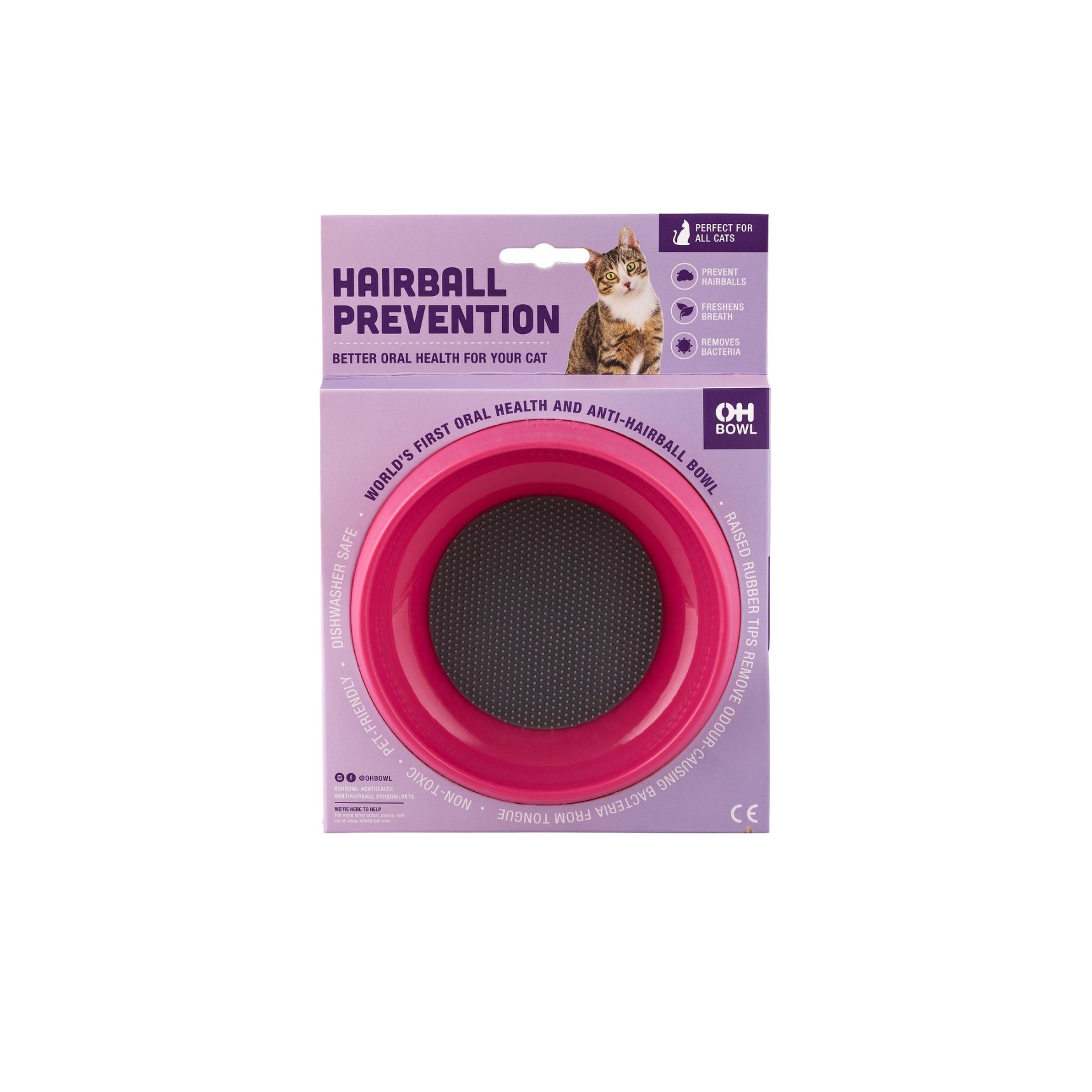 OH Bowl за котки е купа за хранене на котки с бонус ежедневна грижа за зъбите, която лесно се вписва в живота на собствениците на котки. Със своите фини гумени зъбци, предназначени да насърчават облизването след всяко хранене, всички косъмчета козина на езика следва да бъдат повдигнати и уловени върху зъбците на купата, преди котката да може да ги погълне. При ежедневна употреба това може да помогне за намаляване или предотвратяване на образуването на космени топки. Добре дошла опция за всеки собственик на котка.