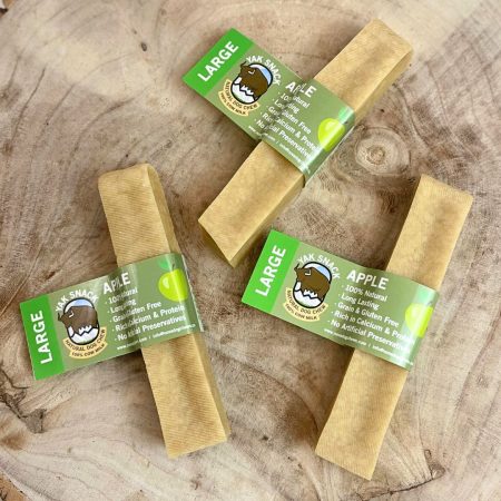 Yak Snack с ябълка няма неприятна миризма и не цапа, което го прави удобно за употреба у дома, в колата или по време на пътуване.
