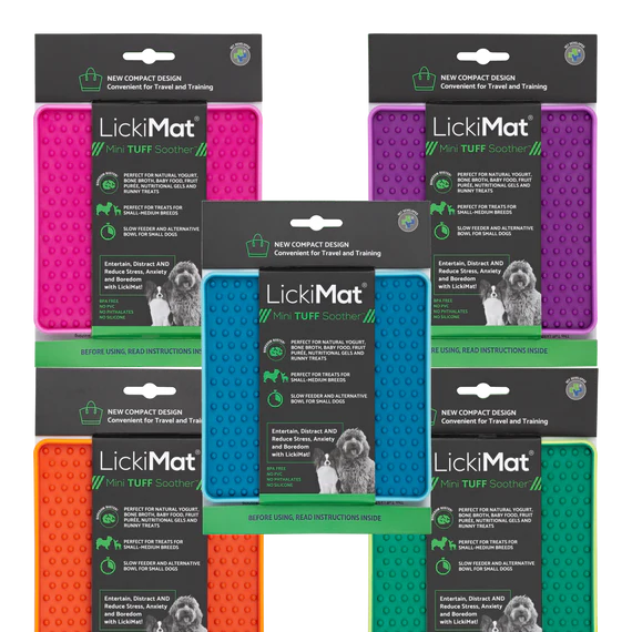 Открийте силата на близането с LickiMat® Mini Soother Tuff™ – издръжлива и устойчива подложка за близане за кучета и котки!