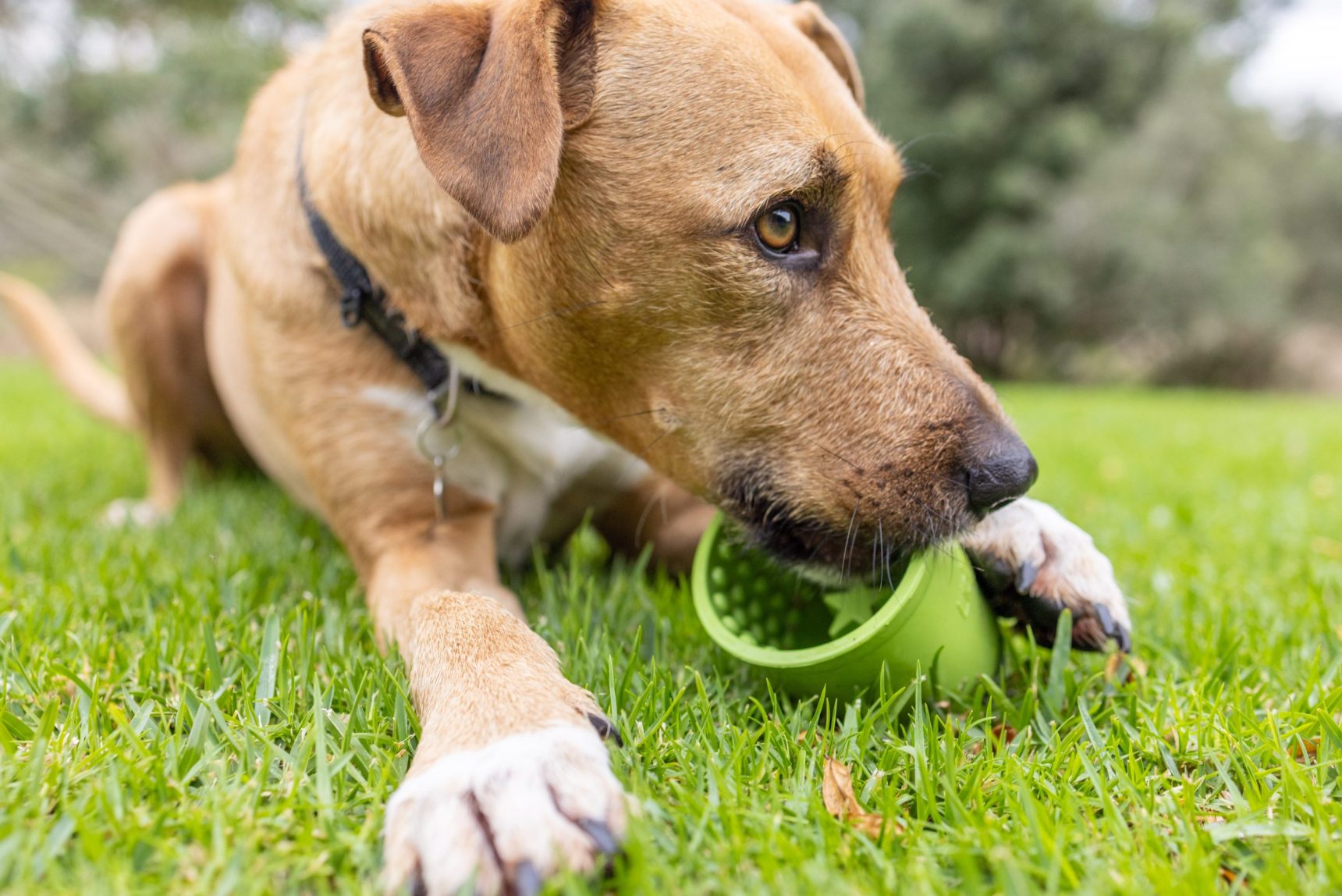 LickiMat Yoggie Pot е интерактивна купа за кучета, създадена да превърне храненето и даването на лакомства в успокояващо и забавно преживяване. Благодарение на специалната си форма и текстура, тя стимулира кучето да ближе повърхността, което насърчава отделянето на ендорфини и помага за справяне със скуката и тревожността.