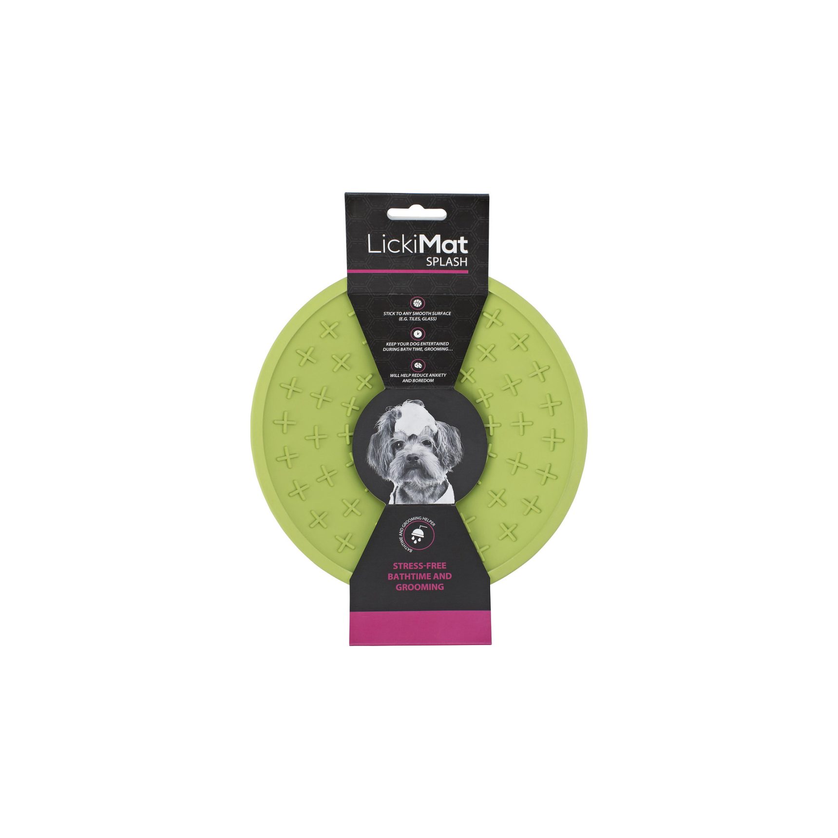 LickiMat Splash® е подложка за близане за кучета и котки, създадена да намали стреса при къпане, подстригване или ветеринарни процедури. Занимава и успокоява кучета и котки, като им осигурява удоволствие чрез облизване. Идеална за използване с пастети, мокра храна или кисело мляко.