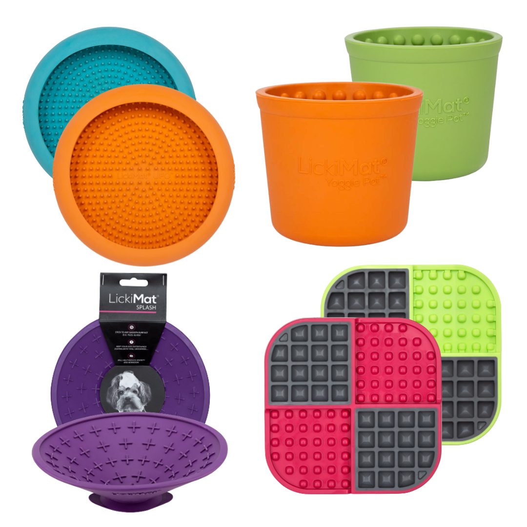 Подарете на кучето си най-доброто изживяване с Ultimate Enrichment Bundle – премиум комплект от 8 LickiMat подложки, създаден за ежедневна умствена стимулация, бавно хранене и намаляване на тревожността. Този набор включва четири различни модела, подбрани така, че да покриват всички основни нужди на вашия любимец: успокоение, разсейване, занимание, хранене и сензорна стимулация.